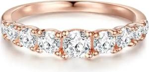 Damen-Ring Verlobungsring Sterling Silber rosévergoldet mit Zirkonia weiß in Brilliant-Schliff - Memoire-Ring mit Stein Trauring für Hochzeit
