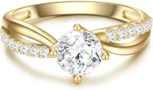 Damen Solitärring aus 925 Sterling Silber Gelbvergoldet mit Zirkonia im Brilliantschliff Verlobungsring Antragsring Silberring in Wickeloptik