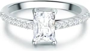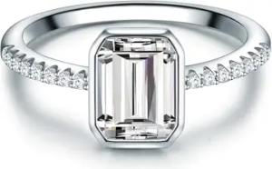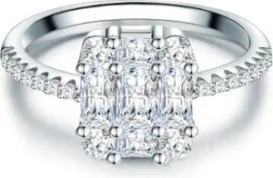 Damen Verlobungsring 925/- Sterling Silber Zirkonia im Brilliantschliff Solitär Rechteckig Vorsteckring Solitärring Antragsring Beisteckring
