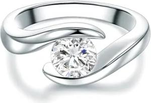 Damen-Solitärring Sterling Silber Zirkonia weiß im Brillantschliff - Spannring gedreht Verlobungsring Antragsring Trauring