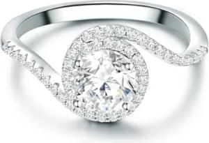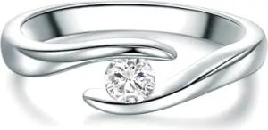 Damen Verlobungsring 925 Sterling Silber mit Zirkonia im Brilliantschliff geschwungener Solitärring mit Krappenfassung Antragsring