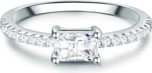 Damen Verlobungsring 925/- Sterling Silber mit Zirkonia im Brilliantschliff Solitär Rechteckig in Krappenfassung Solitärring Antragsring
