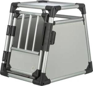 Hunde-Transportbox Aluminium in silber - S: 46 × 56 × 60 cm - stabile und geräuscharme Hundebox mit abgeschrägten Seiten, Sicherheitsverschluss & rutschfester Liegematte – 39340