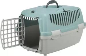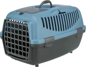 Transportbox Capri 2 – XS-S: 34 × 31 × 55 cm, grau/blau, Transportbox für Hunde bis 8 kg – Tragebox für Haustiere, mit Metalltür vorne und praktischem Gitter oben für einfachen Zugang – 39822