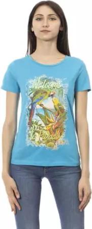 Action Hellblaue Baumwolloberteile & Damen-T-Shirt, Hell, blau, Groß