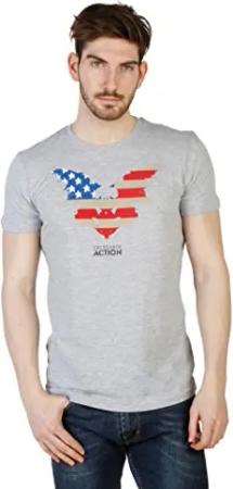 Action Graues Herren-T-Shirt aus Baumwolle, Grau, L