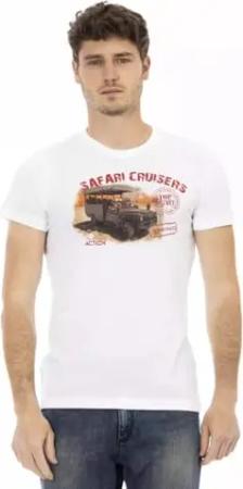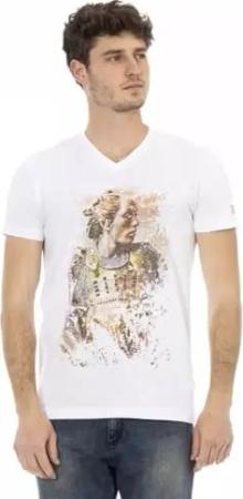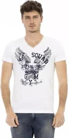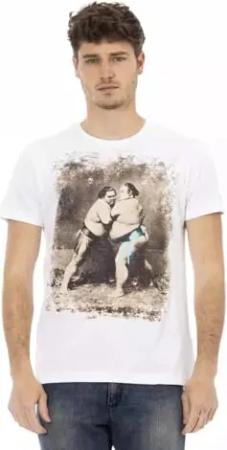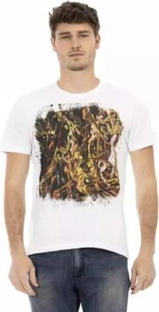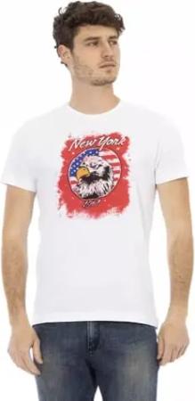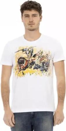 Kurzärmeliges Herren-T-Shirt mit Rundhalsausschnitt und Logodruck aus reiner Baumwolle Artikel TRU2MTS03, 01 White, XXL