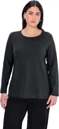 Damen große Größen Übergrößen Plus Size Shirt, Slim, Rundhalsausschnitt, Langarm schwarz 54+ 646801100-54+