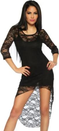 Negligee-Kleid aus Spitze mit Rock in Schwarz