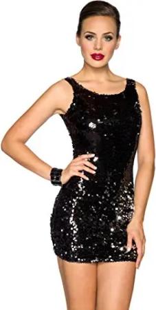 Sexy Mini-Kleid mit Pailletten schwarz Partykleid Abendkleid Cocktailkleid Clubwear, Größe:S/M