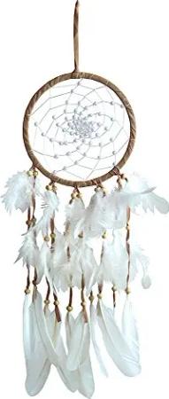 Traumfänger "White Swirl" Leder braun mit weissen Perlen, 16x55cm