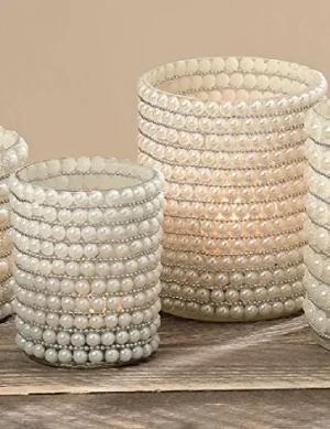 Windlicht Windlichthalter Teelichthalter Perle edel Gartendeko Tischdeko Hochzeit Weihnachten Geburtstag Taufe 2er Set