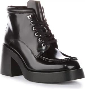 Brooke Women's Lace Up Leather Block Heel Ankle Boot With Zip (Schwarz, EU 38)