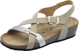 VG324AT Sandalen mit Keilabsatz für Damen Econabuk und Glitter, sand, 41 EU