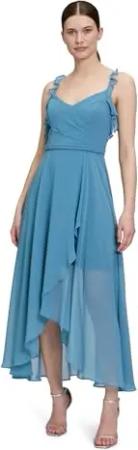 Damen Abendkleid mit Volant 44, Shiny Bluestone