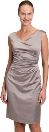 Damen Cocktailkleid mit Wasserfallausschnitt 42, Dusty Slate