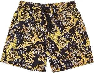 Herren-Shorts mit Barock-All-Over-Aufdruck, elastisch und Kordelzug im Bund, zwei Taschen an der Vorderseite., Schwarz , 40