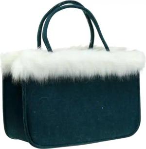 Filztasche Petrol mit Fellrand & Henkeln, 38x24x20 cm, Stilvolle Einkaufstasche/Dekotasche