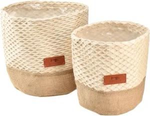 Handmade Stoffkörbchen Creme Utensilo Übertopf Ø16cm Ø19cm Set