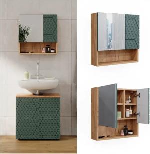 Badspiegelschrank Grün/Artisan Viola 60x75x18 cm - Badezimmerschrank mit Spiegel, Übersichtliche Organisation Dank cleverer Fächeraufteilung