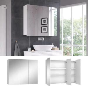 Spiegelschrank Sola 100 x 79,8 cm, Weiß, Schrank mit 3 Türen, Badezimmer