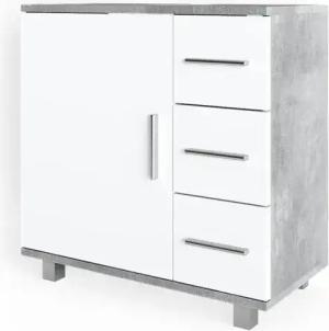 Unterschrank R-Line, Beton/Weiß, 40 cm mit Schublade, mit Arbeitsplatte