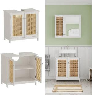 Waschtischunterschrank Rosario 60 x 58 cm, Weiß, 2 Türen, Badezimmer, modern