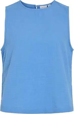 Damen Blusen Top mit Rundhals und Rückenschlitz Ärmellos Leinenoptik, Farben:Blau, Größe:34