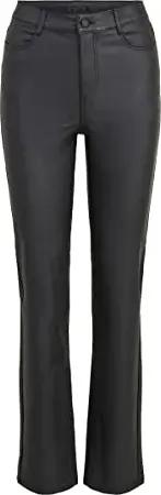 Damen Vicommit Coated Hw Straight Pant-noos Kunstlederhose, Schwarz, XS EU