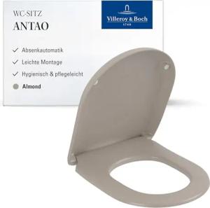 Antao WC-Sitz - Toilettendeckel mit Absenkautomatik - Abnehmbarer, bruchsicherer Toilettensitz aus Duroplast - Original Ersatzteil - Klodeckel in D-Form - Almond, matt