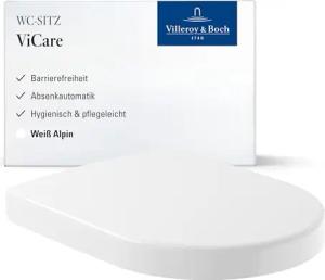 ViCare WC-Sitz barrierefrei - Toilettendeckel Weiß Alpin mit Absenkautomatik - Abnehmbarer, bruchsicherer Toilettensitz aus Duroplast - Klodeckel D-Form - Original Ersatzteil