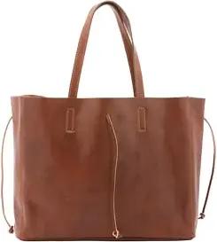 Damen Handtasche Echtem Leder, Italian Umhängetasche Damen Schultertasche 35x45x11cm 5591 Cognac