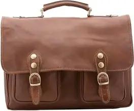 Unisex Handtasche aus echtem Leder Made in Italy 38 x 32 x 6 cm NAN-4542-TESTA_DI_MORO