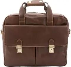 Unisex Handtasche aus echtem Leder Made in Italy 38 x 28 x 7 cm NAN-4318-Braun