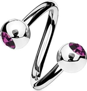 Lippenpiercing Chirurgenstahl Labret Spirale Twister Kristall Doppelkugel Twist Z336, Violett