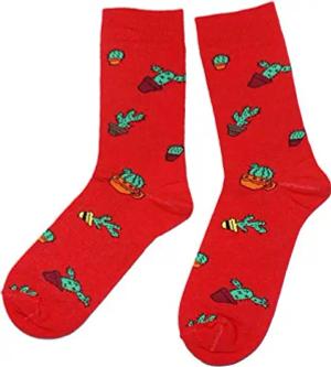 Herrensocken Business Casual Funny Socken in modischen lustigen Muster- und Farbvariationen mit hohem Baumwollanteil. (39-42, Rot Kaktus)