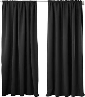 2er Set Gardinen, Verdunklungsvorhänge für Wohnzimmer Kinderzimmer, Blickdicht, Kräusebänder für Schiene, 250 g/m², kälteschutz lichtundurchlässig, 135 x 225 cm, Schwarz