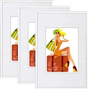 Bilderrahmen 50x70 cm Set of 3 Fotorahmen aus Kunststoff mit Passepartout, Posterrahmen zum vertikalen oder horizontalen Aufhängen/Aufstellen, Collage Wanddeko, Weiß