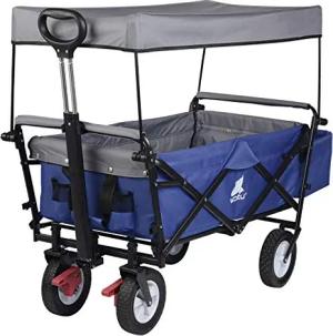Bollerwagen faltbar, Handwagen Gartenwagen mit Dach, Rollen, Bremse, Strandwagen mit Sonnenschutz, für Garten Camping Kinder, 80 kg belastbar, Blau