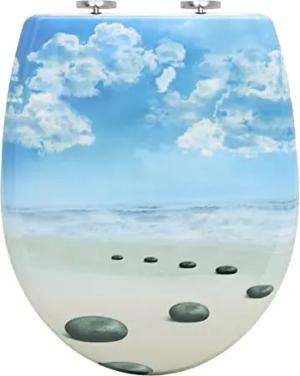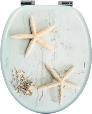 Premium WC-Sitz Toilettensitz mit Absenkautomatik, MDF Holzkern, Softclose Scharnier, Desgin Décor Seestern Oval