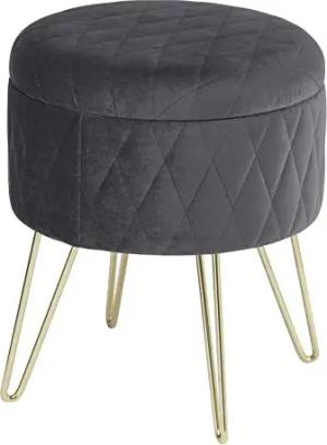 Sitzhocker mit Stauraum Polsterhocker Samtstoff Golden Metallbeine, Kleiner Hocker Spielzeugkiste 31,5 x35cm, gepolsterte Fußhocker Abstellhocker, bis 150KG belastbar, Dunkelgrau