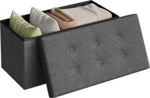 Sitzhocker mit Stauraum Sitzbank faltbar Truhen Aufbewahrungsbox, Deckel abnehmbar, Gepolsterte Sitzfläche aus Leinen, 76x37,5x38 cm, Dunkelgrau