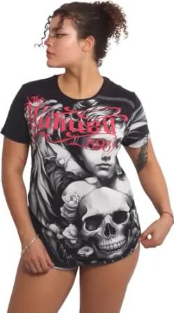 Damen Death Rose Curved Crew Neck T-Shirt