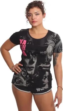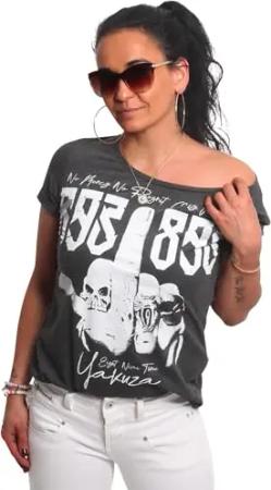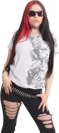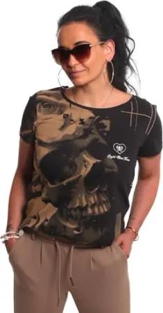 Damen Dark Skull Curved V-Neck T-Shirt
