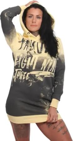 Damen Liquid Rose Hoodie Kleid, Grau/Gelb, XS