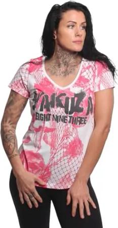 Damen Mesh Rose Curved V-Neck T-Shirt