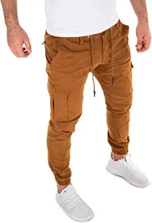 Z1206 Herren Cargohose Baumwolle Urban Cargo Chinohose Jogging Pant, Braun (Camel 181018), W32/L34
