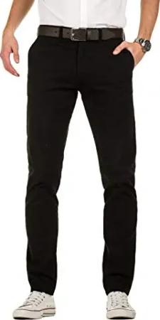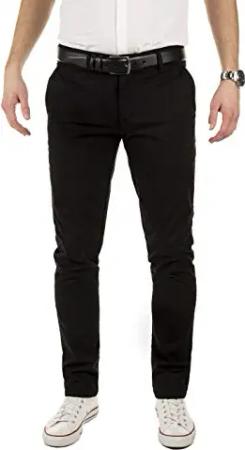Herren Chino Hose, Slim Fit, Modell Kyle, Chinohose mit Gürtel, Schwarz (Black 194008), W31/L34