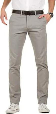 Herren Chino Hose, Slim Fit, Modell Kyle, Chinohose mit Gürtel, Grau (Grey Gull 173802), W33/L30