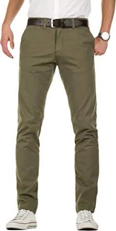 Herren Chino Hose, Slim Fit, Modell Kyle, Chinohose mit Gürtel, Grün (Dusty Olive 180515), W33/L30